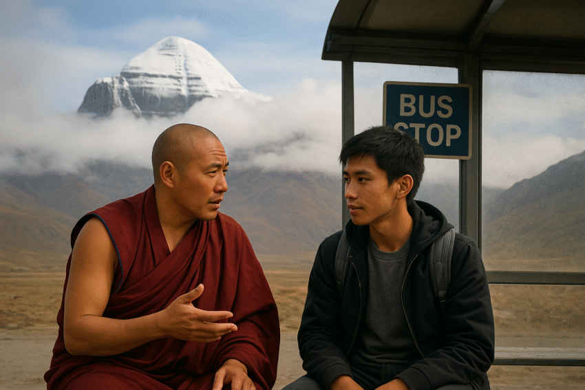 ཐེངས་ཤིག་བོད་ནས་ཡིན་པའི་སྐུ་ཤོག་ཞིག་རྡ་རམ་ས་ལར་གནས་མཇལ་དུ་ཕེབས་པ་རེད། དེ་དུས་རྡ་རམ་ས་ལ་ནི་བོད་ནས་གསར་འབྱོར་ཕེབས་མཁན་མང་པོ་ཡོད་དུས་རྡ་སའི་བོད་མི་ཚོར་བོད་ནང་གི་གནས་ཚུལ་དང་། ས་ཡི་ཆགས་དབྱིབས་སོགས་ལ་སྐད་ཆ་འདྲི་རྒྱུ་གོ་སྐབས་མང་པོ་ཐོབ་ཀྱི་ཡོད། བྱས་ཙང་ལྷ་ས་ནས་ཡིན་ཟེར་མཁན་འབྱུང་ན་ལམ་སེང་རྩེ་པོ་ཏ་ལ་གང་འདྲ་འདུག ཁྲོམ་གཟིགས་ཁང་ལ་ཚོང་གང་འདྲ་འདུག དེ་བཞིན་བར་སྐོར་ནང་ཕྱག་འཚལ་མཁན་སོགས་མང་པོ་ཡོད་མེད་དྲི་གི་ཡོད། ད་ཐེངས་ཀྱི་བོད་ནས་ཕེབས་མཁན་གྱི་སྐུ་ཤོག་དེ་བོད་ཀྱི་སྟོད་ཕྱོགས་མངའ་རིས་ཁུལ་ནས་ཡིན་པ་དང་ལྷ་སའི་སྐོར་དེ་ཙམ་རྒྱུས་མངའ་མེད། སྐུ་ཤོག་དེ་རྡ་སར་སྤྱི་སྤྱོད་རླངས་འཁོར་སྒུག་ནས་བཞུགས་པའི་སྐབས། རྡ་སའི་བོད་མི་གཞོན་སྐྱེས་ཤེས་ཡོན་ཡོད་མདོག་ཁ་པོ་ཞིག་རྐྱང་དེར་མོ་ཏ་སྒུག་ནས་བསྡད་ཡོད། གཞོན་སྐྱེས་དེས་སྐུ་ཤོག་དེ་མཐོང་བ་དང་ལམ་སེང་རྒན་ལ་བོད་ནས་ཕེབས་པས་ཞེས་དྲིས། སྐུ་ཤོག་དེས་བོད་ནས་ཡོང་ཡིན་ཟེར་མ་ཐག། གཞོན་སྐྱེས་དེས་དེང་སང་ལྷ་སའི་ཁྲོམ་གཟིགས་ཁང་ལ་འཁྲུགས་པོ་འདུག་གམ་ཟེ་དྲིས། སྐུ་ཤོག་དེས་ཁྲོམ་གཟིགས་ཁང་རྒྱུས་མངའ་མེད་དུས། ཨོ་་ང་ལྷ་ས་ནས་མིན་མངའ་རིས་ནས་ཡིན་ཟེར།